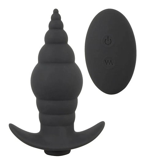 Черная анальная вибропробка Angelina Remote Rotating Plug - 14 см.