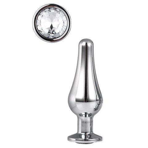 Серебристая анальная пробка с кристаллом Silver Pleasure Plug S - 9 см.