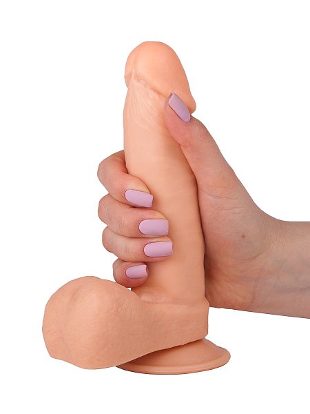 Реалистичный гелевый фаллоимитатор в виде эрегированного фаллоса с соблазнительной мошонкой с удовольствием заменит вам умелого любовника.