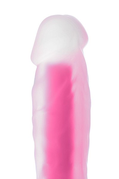 Прозрачно-розовый фаллоимитатор, светящийся в темноте, Tony Glow - 20 см.