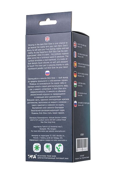 Светящийся в темноте Dick Glow — твой выход за пределы реальности с собственным героем. Можешь не волноваться! Он спасет тебя от скучных ночей и серой действительности, ведь, как у каждого супергероя, у Dick Glow есть сверхспособность. В темноте из обычной реалистичной игрушки он превращается в сияющий жезл удовольствия. Внешняя часть, идеально имитирующая мужское достоинство, выполнена из жидкого силикона — такого приятного и нежного на ощупь. Внутренний слой светится благодаря безопасной фосфоресцирующей пудре. Позволь Dick Glow стать твоим героем. Рабочая длина - 13 см.