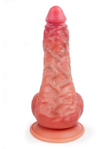 Роскошный фаллоимитатор для тех, кто выбирает большие размеры и любит ощущение максимальной заполненности. Ярко выраженная головка, мощный ствол, объёмная мошонка притягивают и разжигают желание. Рельефная поверхность с выпуклостями и «пульсирующими» венками усиливает возбуждение. Изогнутая форма позволяет стимулировать точку G.Секс-игрушка гнётся в разные стороны, что существенно расширяет возможности её использования. Подходит для различных видов интимной близости и всевозможных поз. Широкая присоска надёжно фиксирует фаллоимитатор на ровной поверхности. Благодаря мягкому материалу секс-игрушку можно мять, сжимать и скручивать. Изделие просто в использовании, не требует специального ухода. Рабочая длина - 15,5 см.