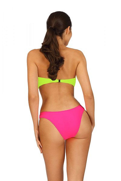 Раздельный купальник. Мягкий бюстгальтер из ткани тактель по типу бандо с дополнительными боковыми поддержками, на спине металлическая застежка. Плавки слип на стрейч подкладке. Купальник светится при флуорисцентном освещении. В комплекте: лиф, трусики. Внимание: европейские размеры! См. размерную сетку производителя.