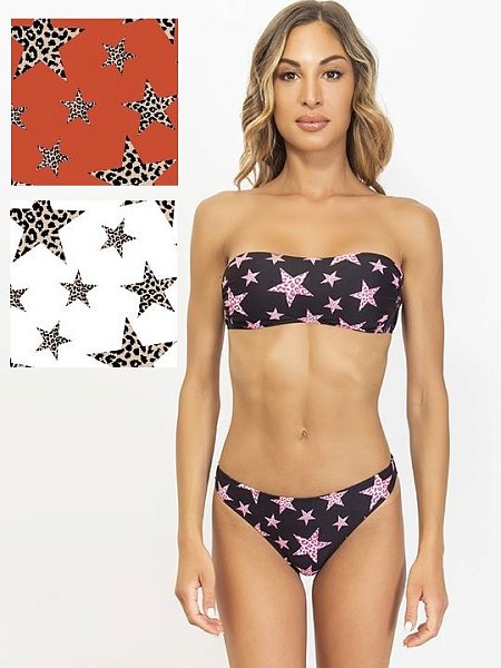 Раздельный купальник-бандо с леопардовыми звездочками