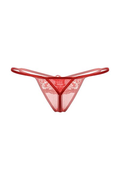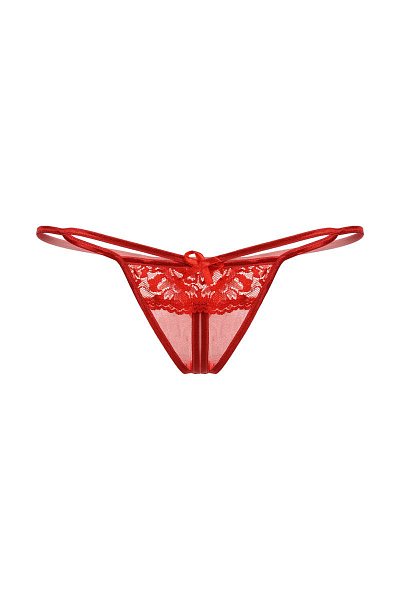Эти трусики-стринг с кружавчиками способны выдержать даже самый мощный секс-натиск. Всё потому, что внизу имеется разрез, он же – доступ к святая святых.