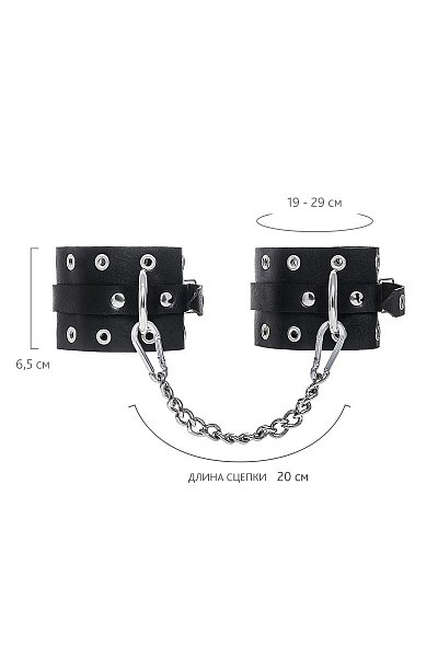Настроится на волну дерзкого возбуждения можно, если разнообразить Ваш обыденный сценарий БДСМ-игр. Оковы от российского бренда Impirante могут отлично с этим справится. Однослойный аксессуар полностью изготовлен из экологичной натуральной кожи. Качественный материал устойчив к нагрузкам и долговременному использованию. Ручная выделка, а также аромат, увеличивают непередаваемые ощущения от контакта с сексуальным атрибутом. Пять крепких люверсов помогают подобрать нужный размер обхвата для рук. Аксессуар легко расстёгивается и застегивается, а металлический замок надежно фиксирует оковы. К стальным кольцам с помощью карабина возможно присоединить другие девайсы для Вашей БДСМ- сессии. Ширина манжет - 6,5 см. Длина сцепки - 17 см.