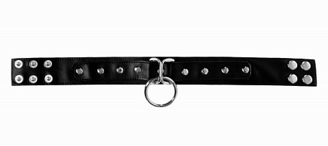 Длинный черный чокер из экокожи с металлическим кольцом