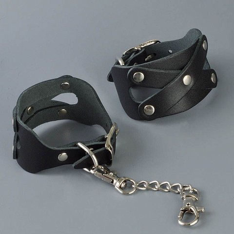 Отзывы о Черные кожаные наручники Цезарь с цепочкой на карабинах