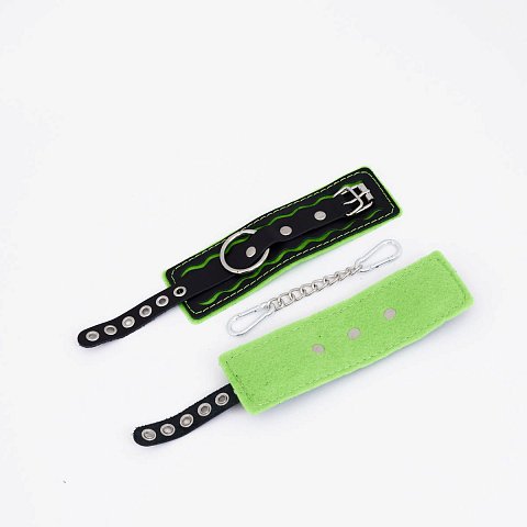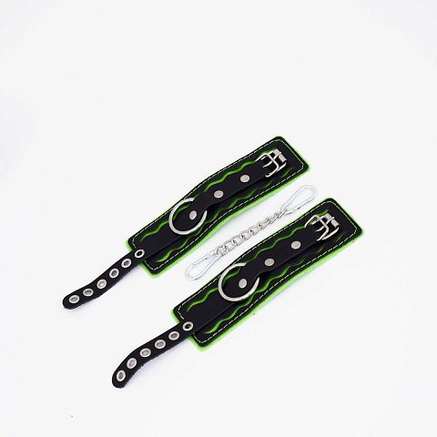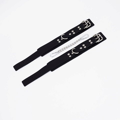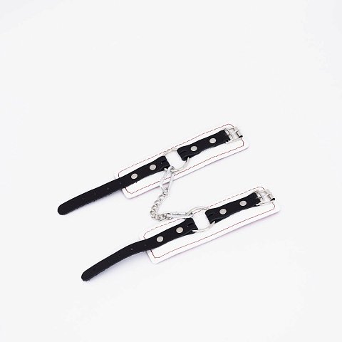 Великолепные наручники под кожу для любителей БДСМ-игр! Внутренняя сторона изделий отделана мехом, который препятствует натиранию кожи. Размер наручников регулируется с помощью ремней. Наручники соединяются между собой металлической цепочкой.