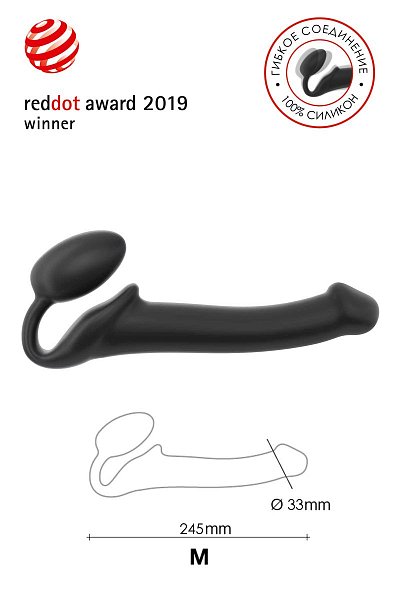 Черный безремневой страпон Silicone Bendable Strap-On - size M