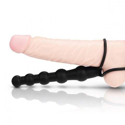 Чтобы подарить партнёрше двойное проникновение, не нужно привлекать кого-то ещё. Эта чёрная анальная ёлочка, будучи закреплённой на пенисе при помощи петли и подхвата для мошонки, станет такой же частью вашего тела, как руга или нога.