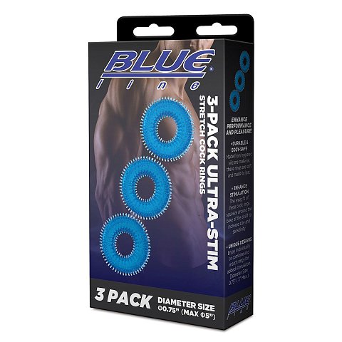 Комплект из трех голубых колец для эрекции 3-Pack Ultra-Stim Stretch Cock Rings