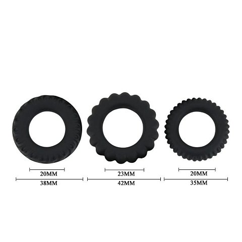 Вы можете использовать только одно кольцо, надев его на основание полового члена, либо все три одновременно, распределив их по всей длине, либо использовать одно из колец для плотного обхвата мошонки. В комплекте: малое кольцо (внутренний диаметр - 2 см., внешний диаметр - 3,5 см.) среднее кольцо (внутренний диаметр - 2,3 см., внешний диаметр - 4,2 см.) большое кольцо (внутренний диаметр - 2 см., внешний диаметр - 3,8 см.).