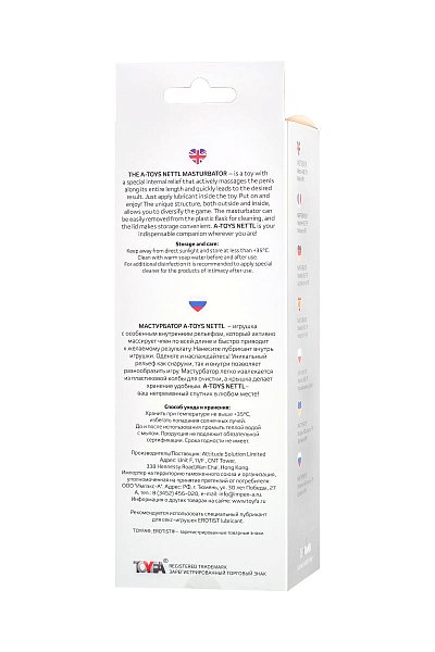 Мастурбатор A-Toys Nettl – игрушка с особенным внутренним рельефом, который активно массирует член по всей длине и быстро приводит к желаемому результату. Нанесите лубрикант внутрь игрушки. Оденьте и наслаждайтесь! Уникальный рельеф как снаружи, так и внутри позволяет разнообразить игру. Мастурбатор легко извлекается из пластиковой колбы для очистки, а крышка делает хранение удобным. A-Toys Nettl - ваш непременный спутник в любом месте! Рабочая длина - 15 см.