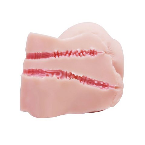 Телесный мастурбатор с двумя любовными тоннелями и вибрацией