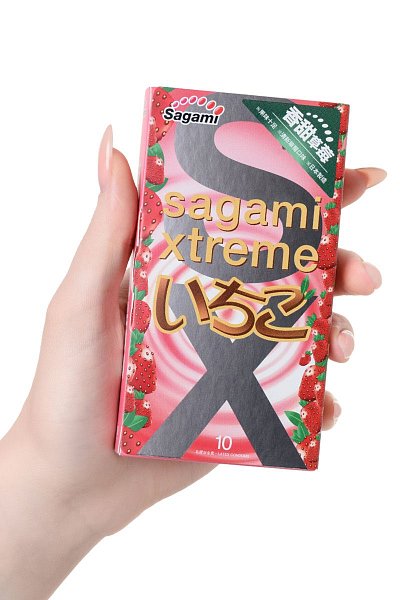 Презервативы Sagami Xtreme Strawberry c ароматом клубники - 10 шт.