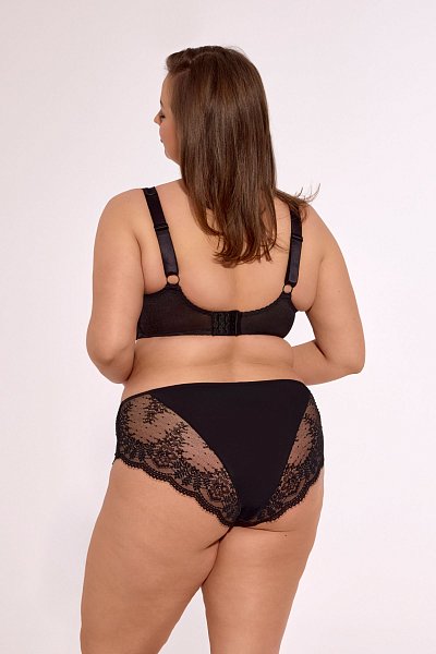 Бюстгальтер Camilla M выполнен на косточках, с дополнительными боковыми поддержками, чашки мягкие, шитые из тонкой сетки и кружевного полотна, с боковым подкроем, спинка из стабилизирующей сетки. Бретельки на плечах с мягким тонким поролоном, не отстёгиваются, регулируются по длине, на спине застёжка - удлинитель на крючках, фурнитура металлическая.