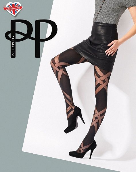 Колготки с имитацией кружевной резинки чулок на левой ножке