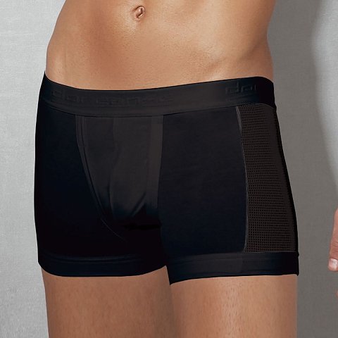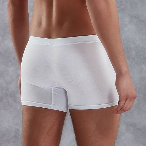 Однотонные эластичные трусы из тонкого, дышащего модала, не деформируются после стирок и поддерживают комфорт в течение дня. Резинка пришита накладным тройным швом. На внешней стороне пояса изображен бренд коллекции, стыковочный шов резинки сзади закрыт кожаным логотипом марки. Швы гульфика спрятаны в двойную подкладку, вшита ластовица, боковые швы отсутствуют.