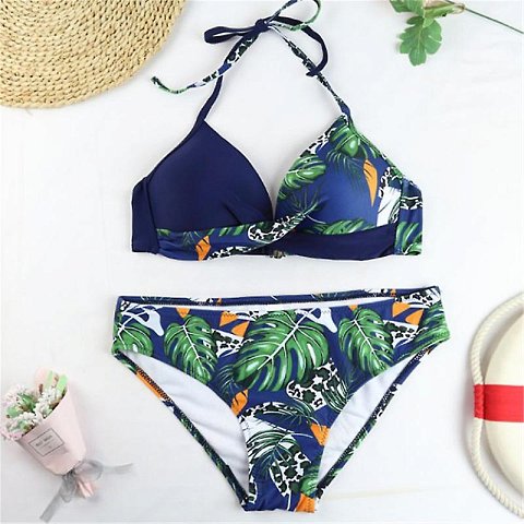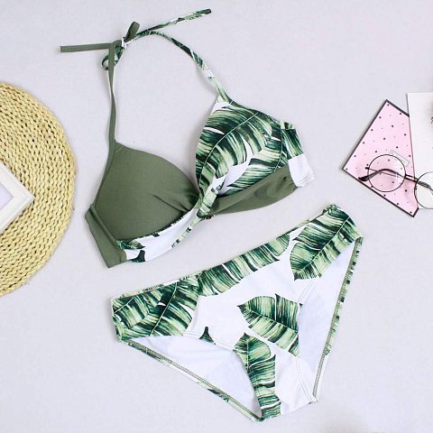 Отзывы о Женский зелено-белый раздельный купальник с растительным принтом