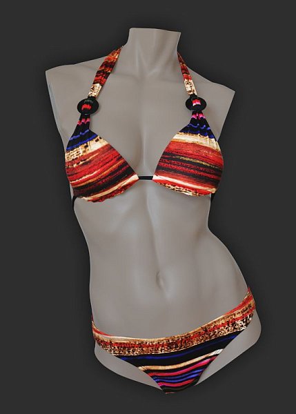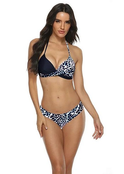 Женский зелено-белый раздельный купальник с растительным принтом. Купальник выполнен из мягкого, быстро сохнущего полотна с принтом. Состоит из бюстгальтера и трусов. Бюстгальтер с формованными чашками без косточек. Обеспечивает комфортную, мягкую посадку. Бретели завязываются вокруг шеи. Застёжка сзади. Трусы средней посадки. В комплекте: лиф, плавки.