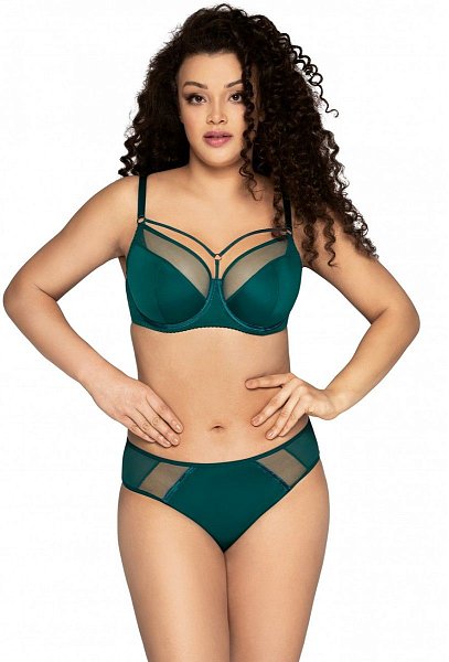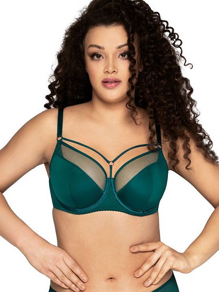 Бюстгальтер на поролоне. Выполнен из эластичного кружева. Стан бюстгальтера выполнен из упругого полотна soft. Нижние детали чашки на дубляже с хлопком. На стане бюстгальтера боковые корректирующие пластины, позволяющие прилегать к телу и не скручиваться.