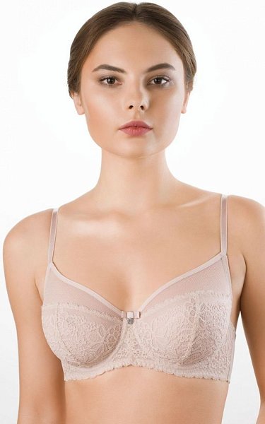 Бюстгальтер-полупоролон с подкроем. Выполнен из эластичного кружева. Стан бюстгальтера выполнен из упругого полотна soft. Нижние детали чашки на дубляже с хлопком. Благодаря боковому подкрою, переходящему в бретель, обеспечена высокая функциональность бюстгальтера.