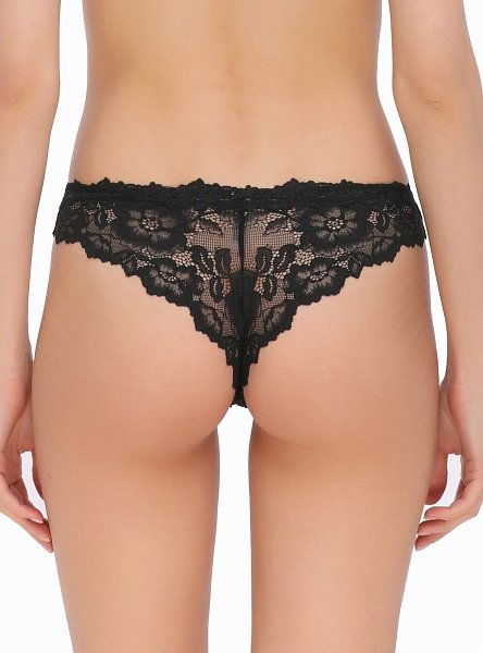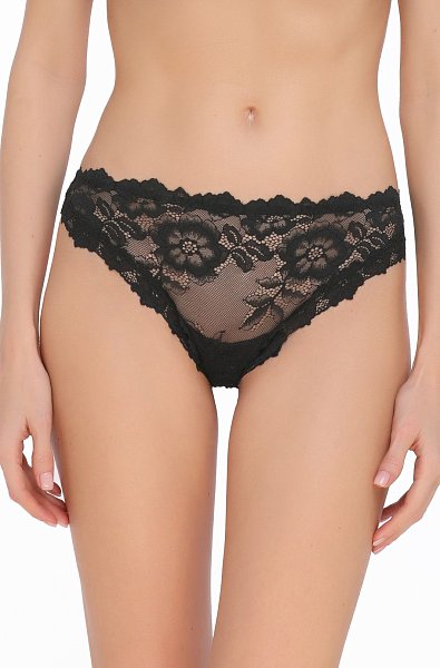 Трусики-бразильяна со средней посадкой талии. Выполнены из кружева, спереди отделаны кружевной лентой по окружности ноги, без использования резинок. Высота бока 4,5см.
