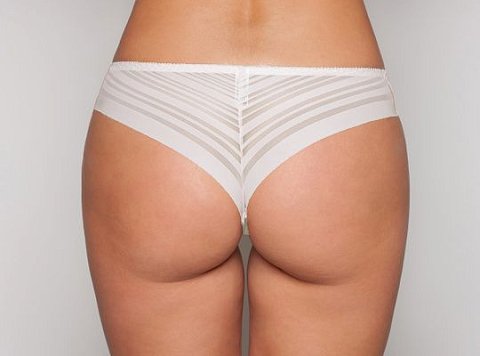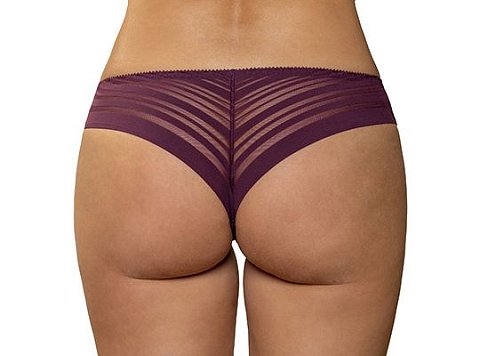 Трусы-танга с заниженной линией талии. Выполнены из микрофибры без блеска и эластичного кружева с орнаментом-полоской. Срезы по краю ножек обработаны на плоскошовной машине. Такие трусики имеют V-образный крой, закрывающий сзади ягодицы лишь наполовину. Внимание, европейские размеры! Для определения размера смотрите размерную сетку производителя!