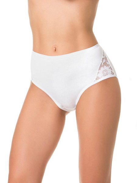 Трусы с высокой линией талии, выполнены из мягкого хлопка со спандексом. Декор - кружевные вставки на передней детали.