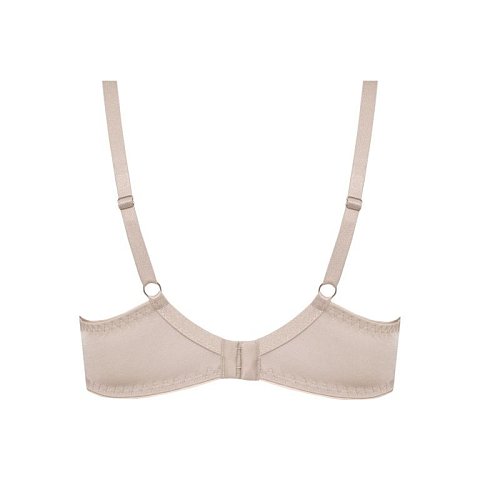 Бюстгальтер на косточках, с боковыми поддержками, чашки шитые, на тонком поролоне, с кармашками для съёмных пуш-ап вкладышей, внутренняя сторона проложена хлопковым трикотажем, внешняя сторона чашек покрыта кружевом с гипюром. Бретельки не съёмные, регулируются по длине.