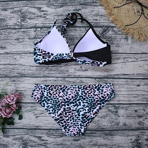 Отзывы о Раздельный купальник с анималистическим принтом и цветными пятнышками